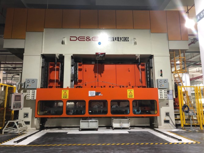 多工位液压机可视为多台液压机及拆垛送料系统的集成,即?台多工位压力机相当于一条自动化压力机生产线,?般由线首拆垛单元、送料机构、压力机和线尾出料单元组成;主要用于拉深、冲裁、弯曲等连续生产工艺,采用独立的纠偏控制系统,实现液压机滑块相对于工作平台平行压制。